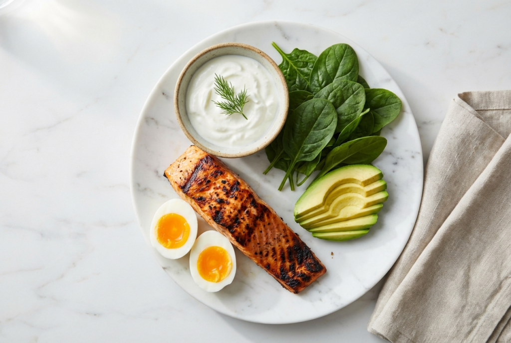 Protein is the single most important dietary lever during a plateau. It preserves muscle, keeps you fuller longer, and has a higher thermic effect — your body burns more calories digesting it. Aim for 25–40 grams per meal. On Ozempic, appetite suppression can make eating enough feel hard, which is exactly why protein needs to come first.